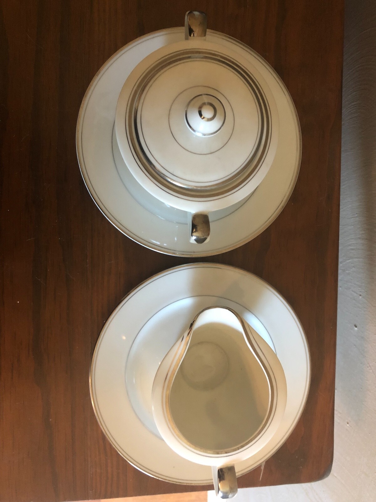 "IMPERIAL CHINA" CREAM & SUGAR w/"318 SINCERITY" PATTERN - GOOD CONDITION With 2 Bread & Butter plates. Vintage 1960's/1970's Minor wear & Tear