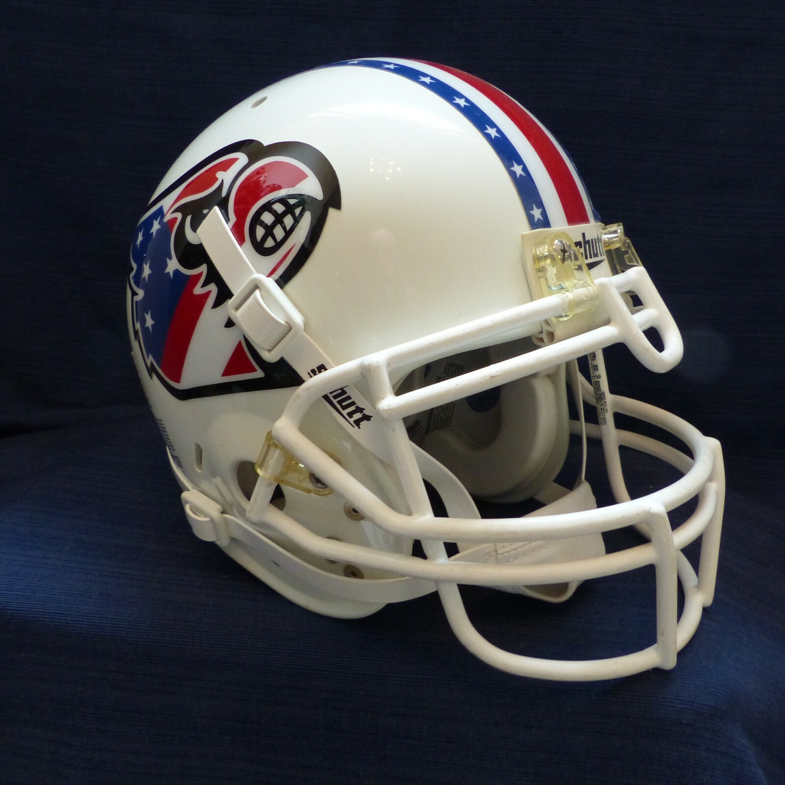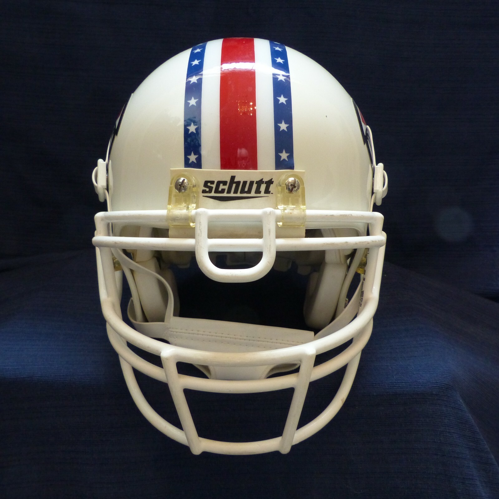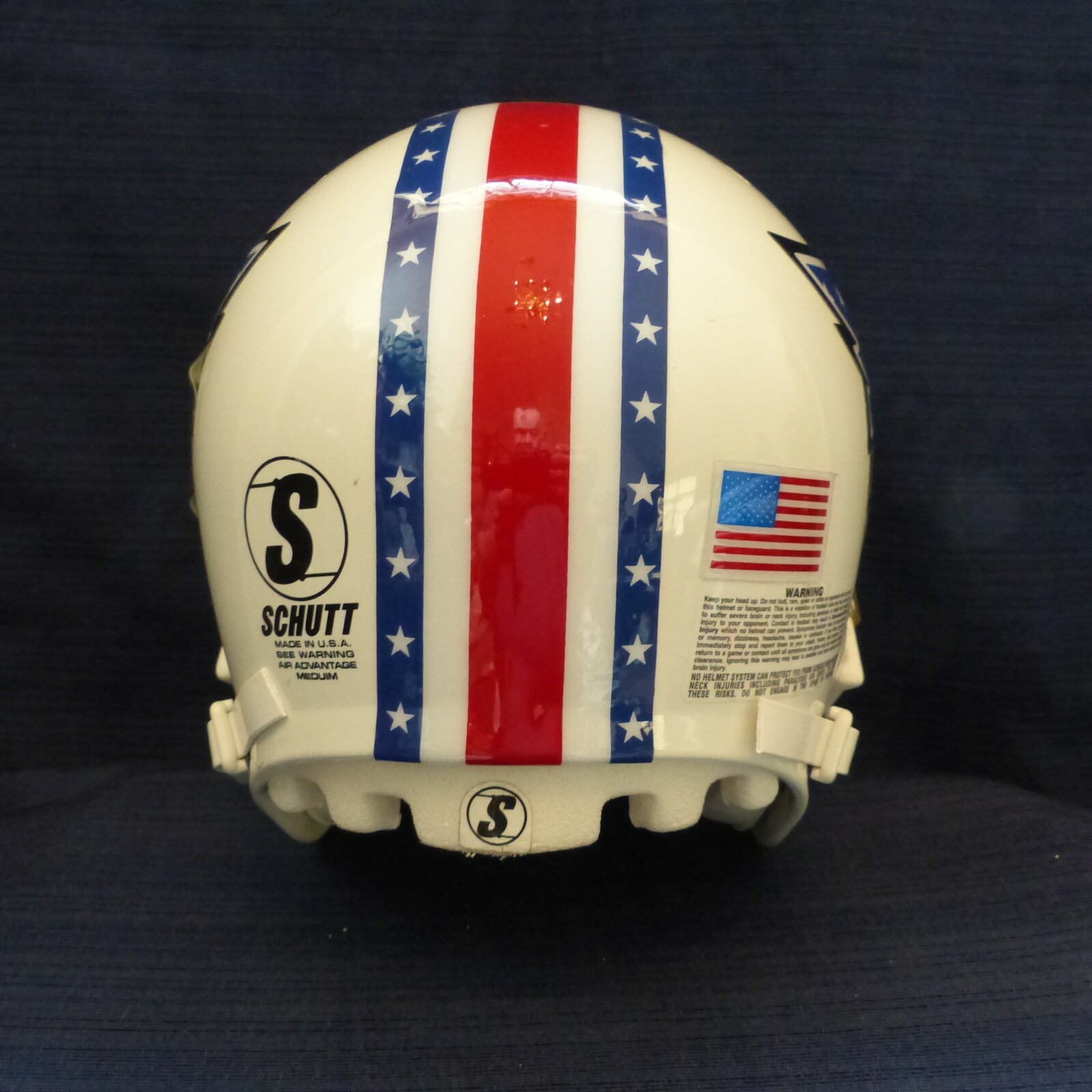 FOR SALE IS A SCHUTT AIR ADVANTAGE, SIZE MEDIUM USED FOOTBALL HELMET WITH CUSTOM " LOUISVILLE CARDINALS " 2010 9/11 MEMORIAL DECALS THEY WORE VS EASTERN KENTUCKY. THIS HELMET COMES COMPLETE STARTING WITH IT'S ORIGINAL WHITE SHELL AND INCLUDES ALL IT'S INNER AIR AND SIZING PADS, TWO 3/4" JAW PADS AND A WHITE HIGH HOOK UP SOFT CUP CHIN STRAP ALONG WITH A WHITE ROPO-UB RB/DB STYLE FACEMASK MOUNTED. PLEASE NOTE THAT THIS IS A REAL, GAMES USED FOOTBALL HELMET THAT DOES SHOW SOME SIGNS OF USE VS OTHER REPLICA HELMETS NEVER MEANT FOR CONTACT OR THAT HAVE FAKE PADDING. PLEASE NOTE, THAT THIS HELMET IS BEING SOLD HERE AS A DISPLAY ONLY.