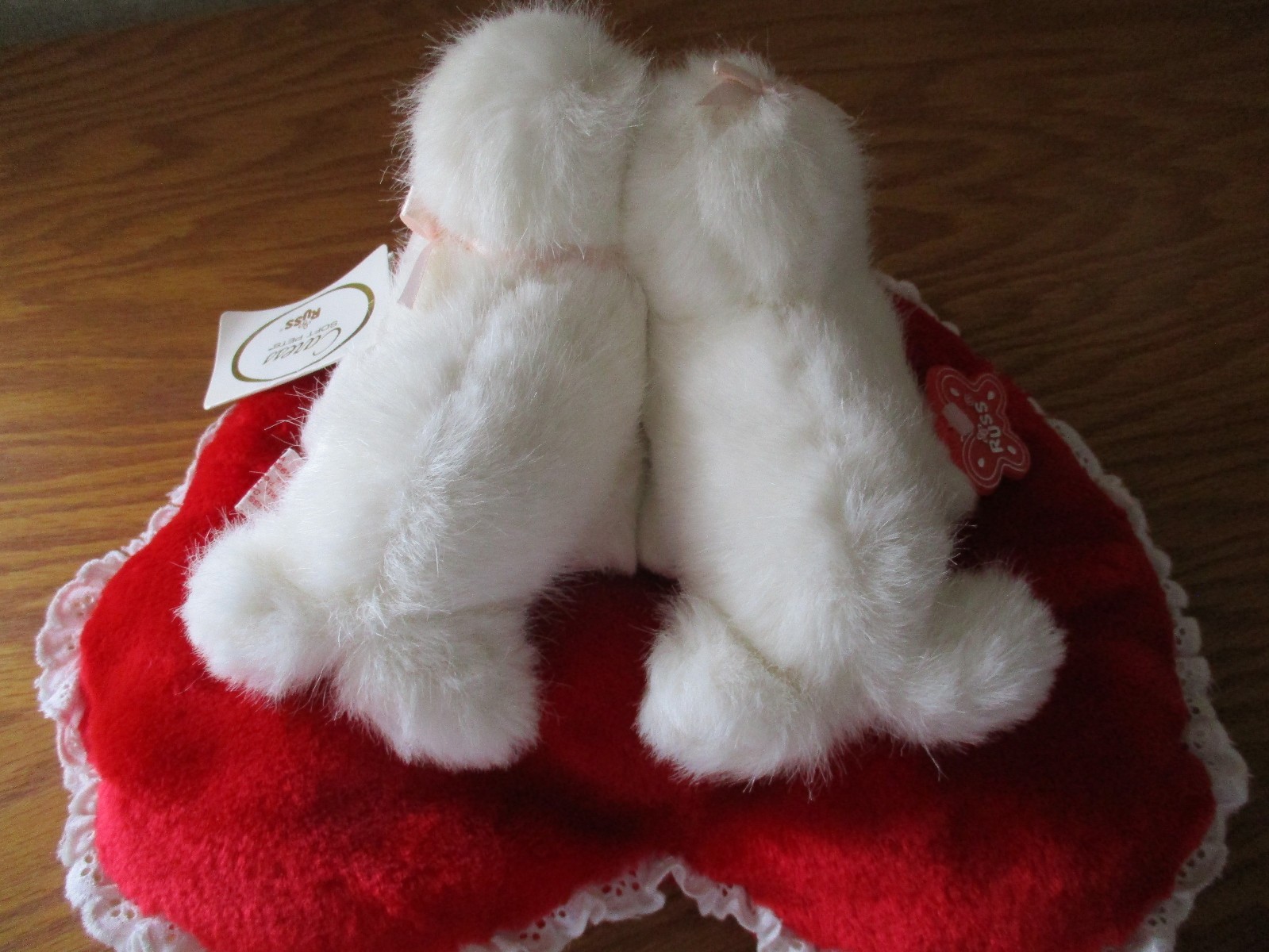 Russ Caress - Soft Pets-2 baby seals on a heart pillow, Nice used condition, has all tags, I do not know the date when this was made. Has no stains and no rips , the lace edging has some strings showing, Please Look at Pictures.It is almost 13" long. Please ask any questions. Shipping is included in the U.S. only.